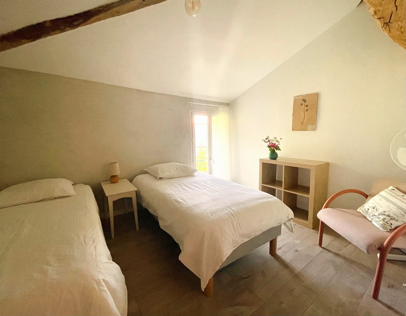 - L’hébergement : en chambre partagée (lits simples) ; 2 chambres (3 pers.) + 2 chambres (2 pers.).