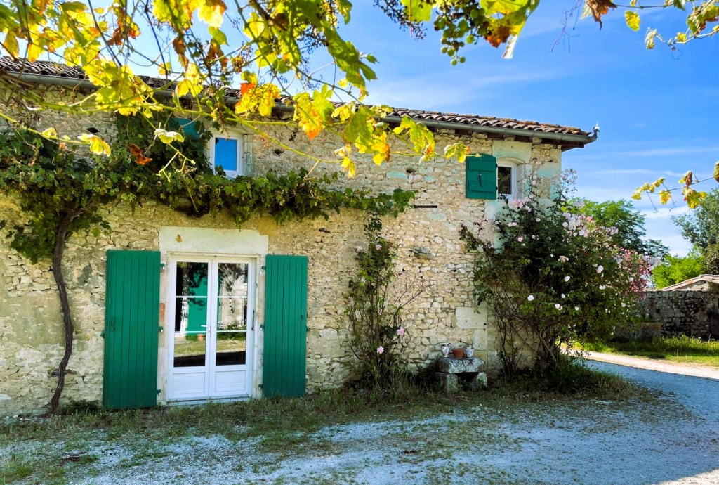 Cet ancien corps de ferme, qu’elle a rénové avec son compagnon, est idéalement situé à Grézac, à mi-chemin entre Royan, Saintes, La Rochelle et Bordeaux.